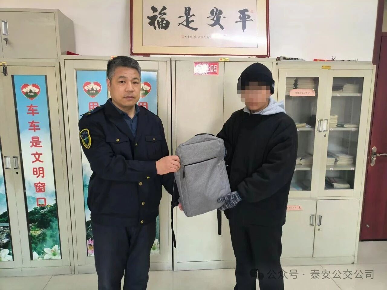 據(jù)了解,齊同學從濟南來泰安上學,當天晚上從泰山火車站乘坐39路公交車前往學校。乘車途中,齊同學因看手機,下車時不慎將裝有筆記本電腦和現(xiàn)金的背包遺落在車廂內,直到抵達學校后才發(fā)現(xiàn)背包丟失。心急如焚的齊同學立刻返回下車的站點尋找,但公交車早已駛離;他又匆忙趕回乘車的泰山火車站公交樞紐站,依舊沒有看到剛才乘坐的那輛公交車的身影。情急之下,齊同學向樞紐站里的一位公交駕駛員詢問了39路所屬分公司的聯(lián)系電話,隨即撥通電話向分公司工作人員求助。